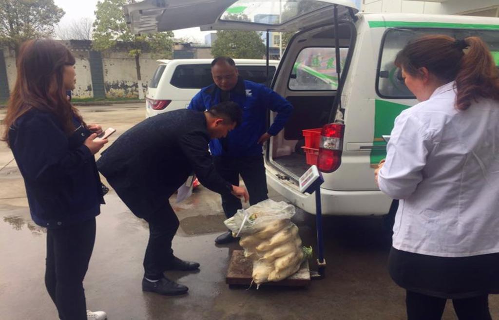 图为食堂采购的第一批“校农结合”农产品验收现场